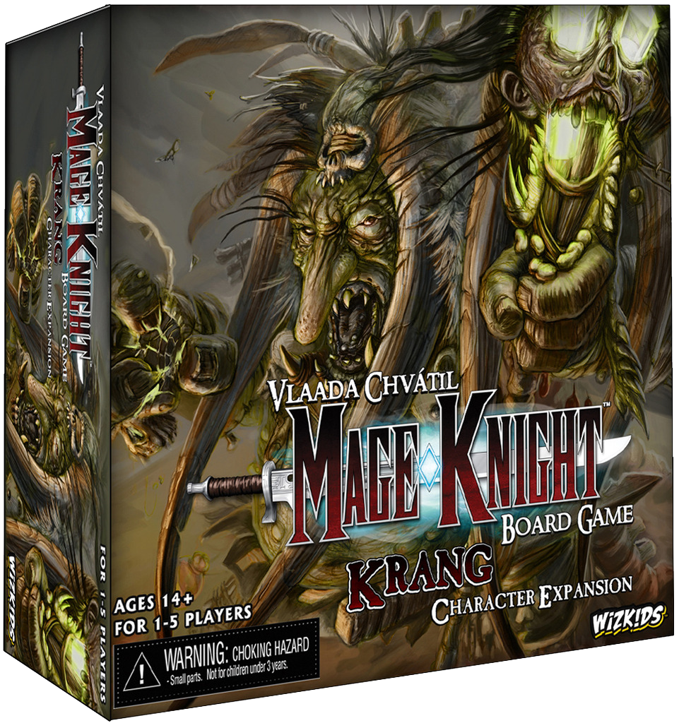 The Mage Knight Board Game: Krang Character Expansion includes all that players need to add Krang, the mysterious and dangerous Orc Chaos Shaman, as a new playable character to the Mage Knight Board Game, including his prepainted miniature, unique starting cards, and skill tokens.