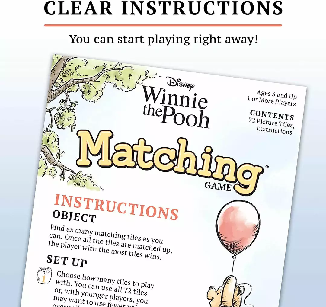 In this classic game of picture matching, flip over colorful tiles to reveal pictures of beloved friends from the hundred Acre wood including, Winnie the Pooh, Piglet, Tigger, Eeyore, and more! which of your favorite characters will you see? Pick up the most matching pairs to win!