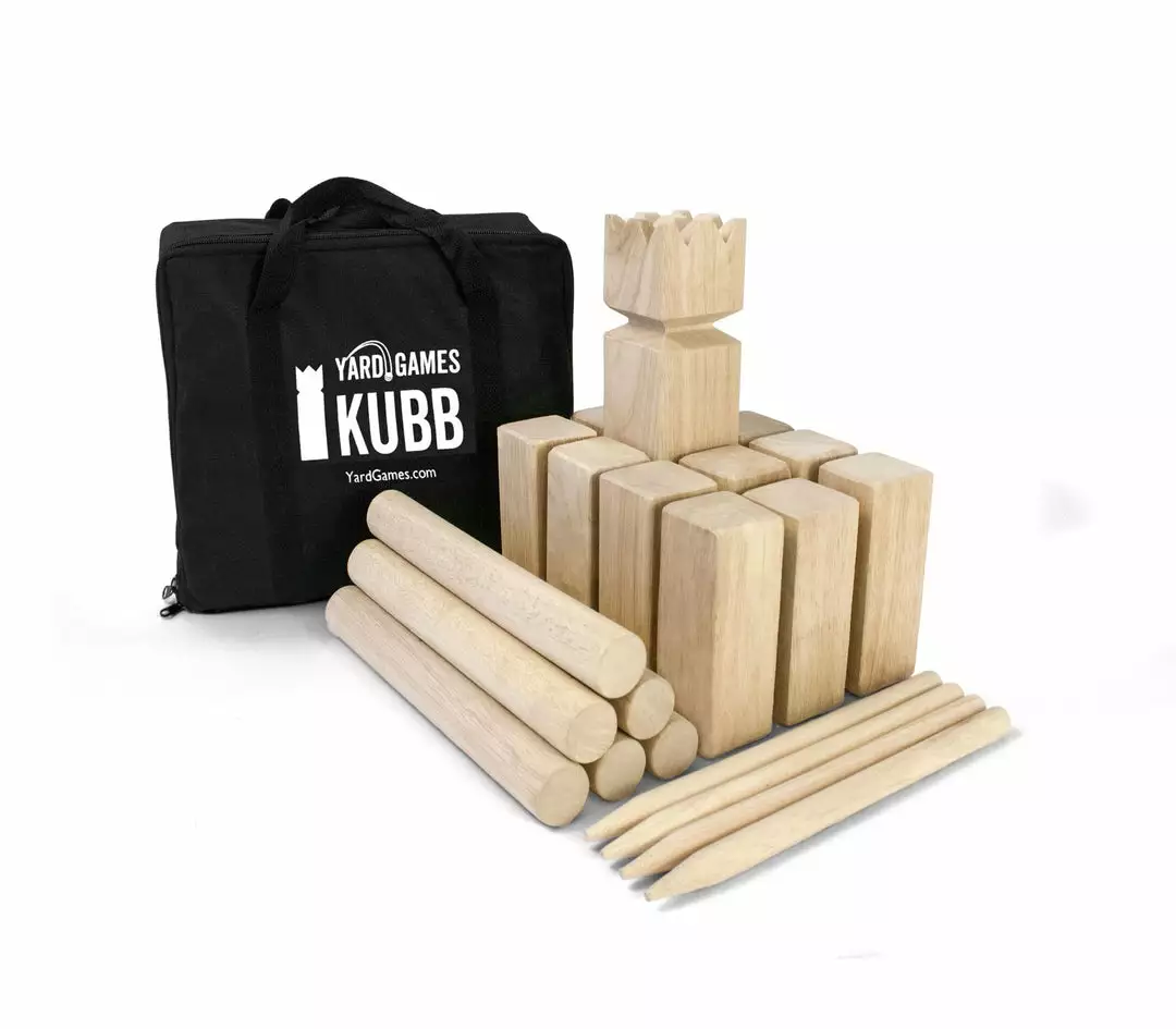 The Viking yard game involving strategy and skill. Toss the dowels to knock over your opponents’ kubb blocks. Be the first team to knock over all the blocks, then the king and you win!