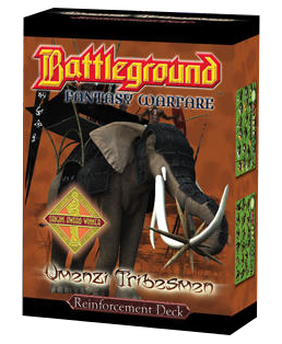 The Umenzi Tribesmen is the sixth faction for Battleground: Fantasy Warfare, the award-winning tabletop wargame in which cards, rather than expensive miniatures, represent your forces. The Umenzi Tribesmen draws inspiration from the great Zulu armies of earth as well as a cinematic take on Voodoo, adding a new level of magic to Battleground play. As with previous Battleground factions, the Umenzi Tribesmen is packaged in two decks. Starter decks include all the cards needed to play — 18 units, the 30-card Command deck and two reference cards — plus the basic rules. Reinforcement decks include 50 unit cards, including two types not found in the Starter, plus the advanced rules.