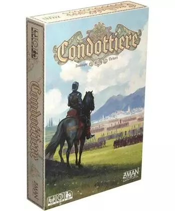 This game has a large deck of oblong cards and a fairly simple map of provinces in Renaissance Italy. The object of the game is to acquire four connected provinces. Game play is fairly simple as players use numbered cards to get the highest bid for a given territory. Unlike standard auctions, in which only the highest bidder loses their bid to the “bank”, in Condottiere, every player loses their bid. Players are, in effect, bidding the number of troops they are willing to lose to win the territory. However, several special effect cards shake the contests up and keep the players guessing.