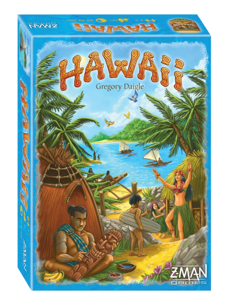 In Hawaii, players must make use of their limited resources to score points by growing their villages and exploring the surrounding islands. Your chieftains move around the board to purchase new tiles for their villages, hopefully grabbing the best deals before their opponents. Three different currencies are used to pay for these trips, so make sure you don’t run out of any of them too quickly. Players are also rewarded for providing for their people (measured essentially by how much they bought on a given turn), but your meager income shrinks as the game goes on. Players will have to balance a number of ways to score points to secure their victory.