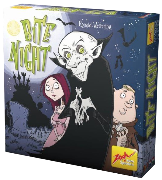 Bite Night is a chaotic game for those who like action. First, players play cards from their hand face down onto a common pile, then they simultaneously flip over tiles and try to grab those which are best for them. At the end of the game, the played cards are executed in order and determine who can score how many points for which combination of tiles.